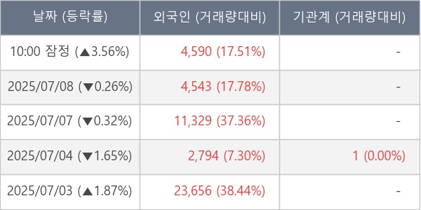 [표] 외국인ㆍ기관 순매매량 (단위 주)