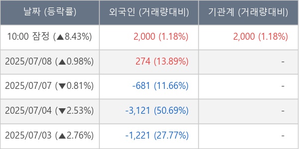 ※ 사모펀드 등 일부 기관의 순매매량은 표시되지 않음