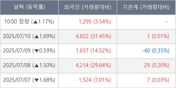 [표] 외국인ㆍ기관 순매매량 (단위 주)