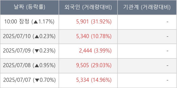 [표] 외국인ㆍ기관 순매매량 (단위 주)