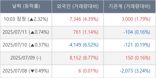 ※ 사모펀드 등 일부 기관의 순매매량은 표시되지 않음