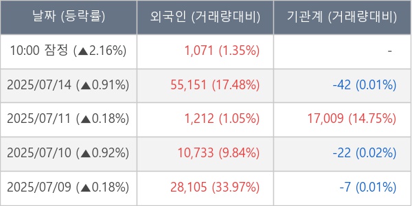 [표] 외국인ㆍ기관 순매매량 (단위 주)