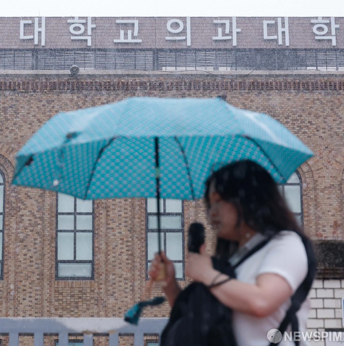 [서울=뉴스핌] 류기찬 인턴기자 = 지난 17일 전국 40개 의대 총장이 모여 복귀 의대생들에 대한 의대교육 정상화 방안을 논의한 가운데 18일 오전 서울 시내의 한 의과대학에서 시민들이 이동하고 있다. 2025.07.18 ryuchan0925@newspim.com