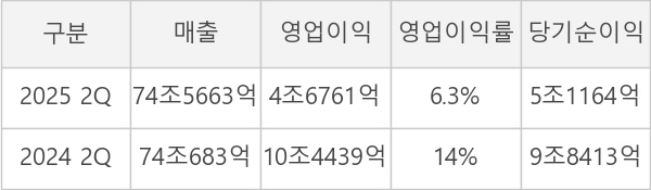 ◆ 2Q 실적, 영업이익 4조6761억원... 전년동기 대비 55% 감소... 영업이익률 하락지속
