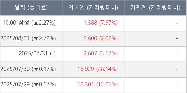 [표] 외국인ㆍ기관 순매매량 (단위 주)