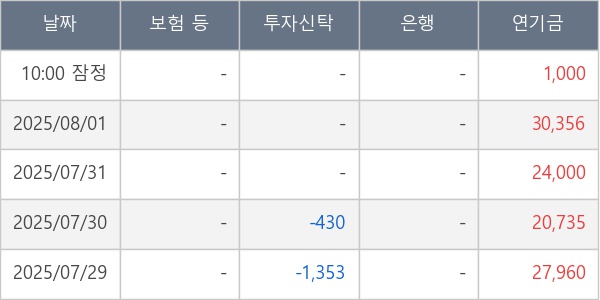 ※ 사모펀드 등 일부 기관의 순매매량은 표시되지 않음