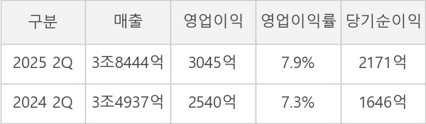 ◆ 2Q 실적, 영업이익 3045억원... 전년동기 대비 20% 증가