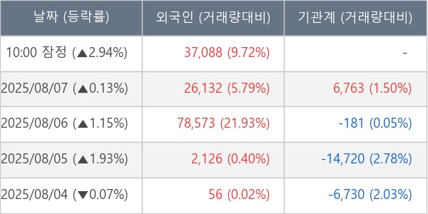 [표] 외국인ㆍ기관 순매매량 (단위 주)