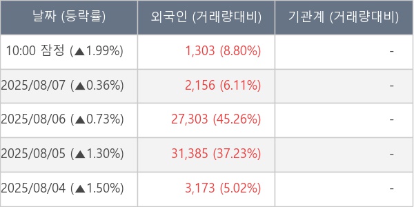 [표] 외국인ㆍ기관 순매매량 (단위 주)
