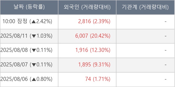[표] 외국인ㆍ기관 순매매량 (단위 주)