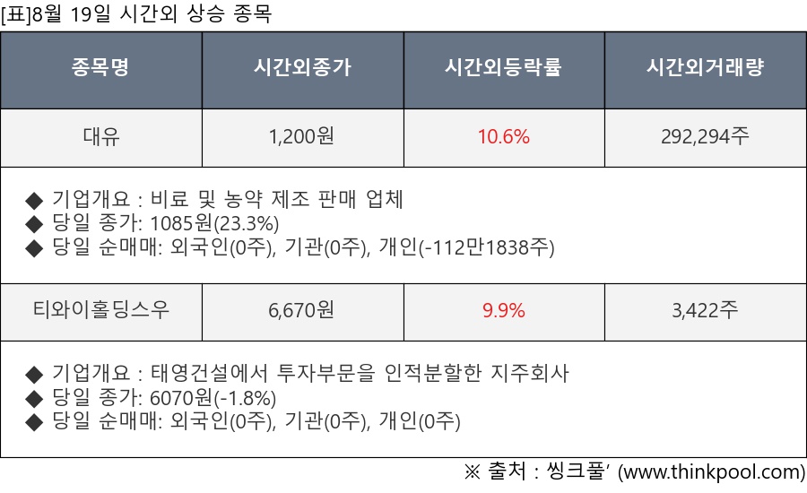 ※ 관련 종목: 대유, 티와이홀딩스우