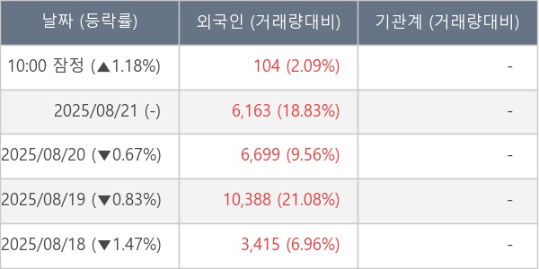 [표] 외국인ㆍ기관 순매매량 (단위 주)