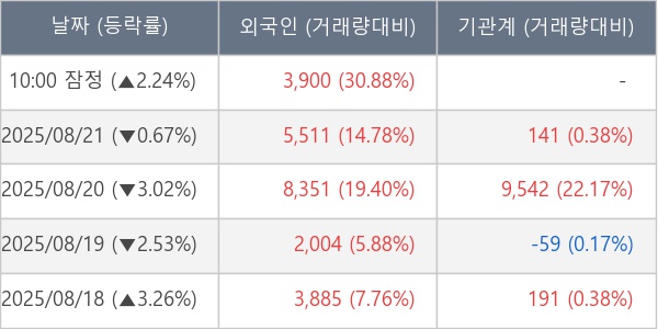 [표] 외국인ㆍ기관 순매매량 (단위 주)