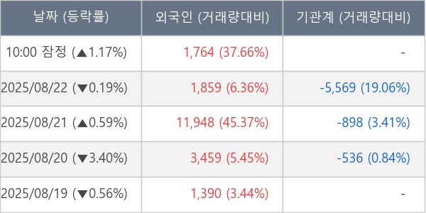 [표] 외국인ㆍ기관 순매매량 (단위 주)