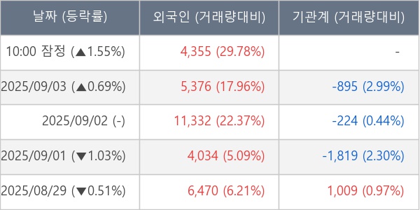[표] 외국인ㆍ기관 순매매량 (단위 주)