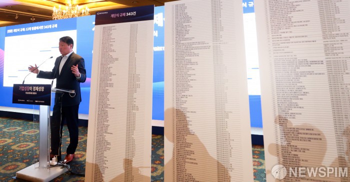 [서울=뉴스핌] 최지환 기자 =최태원 대한상공회의소 회장이 4일 오전 서울 중구 롯데호텔에서 대한상공회의소·한국경제인협회·한국중견기업연합회가 연 기업성장포럼 출범식에서 기조연설을 하고 있다. 2025.09.04 choipix16@newspim.com