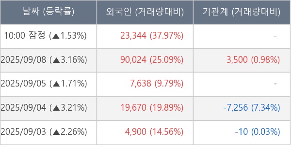 [표] 외국인ㆍ기관 순매매량 (단위 주)
