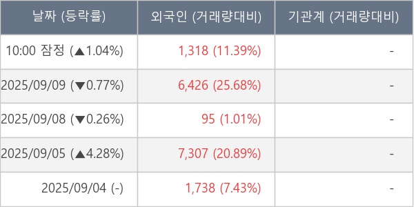 [표] 외국인ㆍ기관 순매매량 (단위 주)