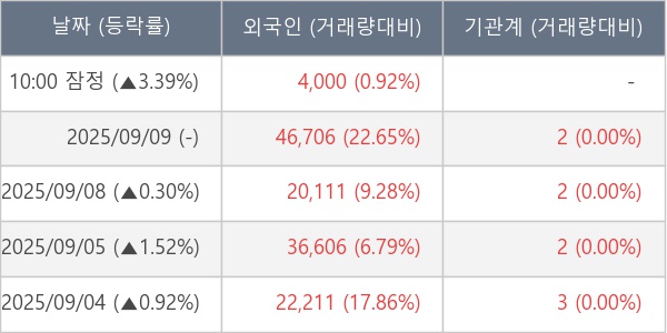 [표] 외국인ㆍ기관 순매매량 (단위 주)