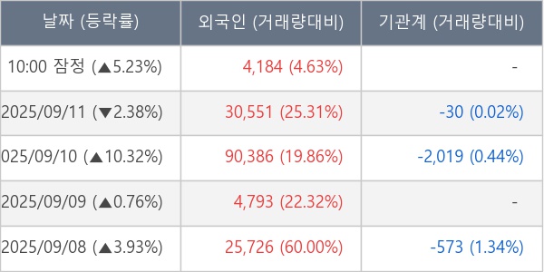 [표] 외국인ㆍ기관 순매매량 (단위 주)