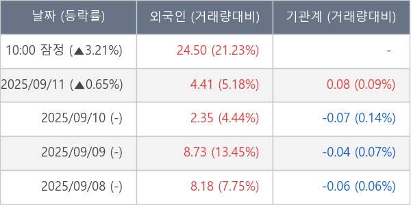 [표] 외국인ㆍ기관 순매매량 (단위 만주)