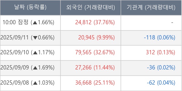 [표] 외국인ㆍ기관 순매매량 (단위 주)
