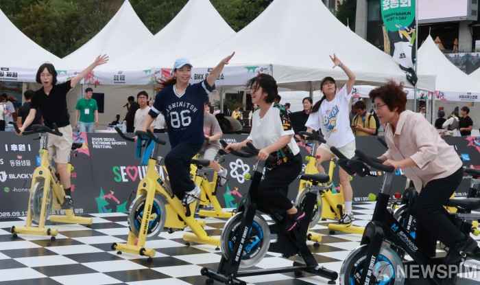 [서울=뉴스핌] 양윤모 기자 = 휴일을 맞아 13일 서울 광화문광장에서 개최된 '2025 서울 익스트림 스포츠 페스티벌'에 시민들이 행사에 참여해 즐기고 있다. '2025 서울 익스트림 스포츠 페스티벌'은 서울시와 서울시체육회가 공동주최하는 축제로, 젊은 세대에 인기 있는 '브레이킹 국제대회(SIBB)'와 전문 선수들이 자전거를 이용해 현란한 기술과 화려한 퍼포먼스를 선보이는 'BMX 데몬쇼'를 중심으로 펼쳐졌다. 2025.09.13 yym58@newspim.com