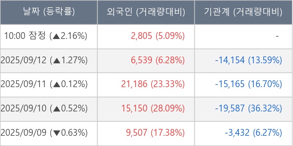 [표] 외국인ㆍ기관 순매매량 (단위 주)