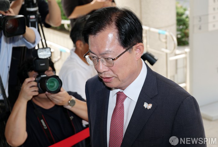 [서울=뉴스핌] 정일구 기자 = 이만희 국민의힘 의원이 15일 오전 서울 양천구 서울남부지방법원에서 열린 '국회 패스트트랙(신속처리안건) 충돌 사건' 관련 1심 결심 공판에 출석하고 있다. 2025.09.15 mironj19@newspim.com