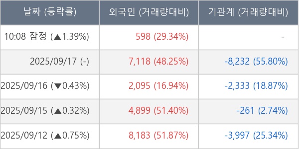 [표] 외국인ㆍ기관 순매매량 (단위 주)