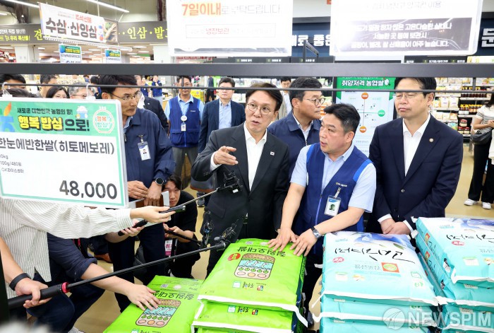[서울=뉴스핌] 청사사진기자단 = 김민석 국무총리가 22일 오전 서울 서초구 하나로마트 양재점에서 추석 맞이 물가 현장점검을 하고 있다. 2025.09.22 photo@newspim.com