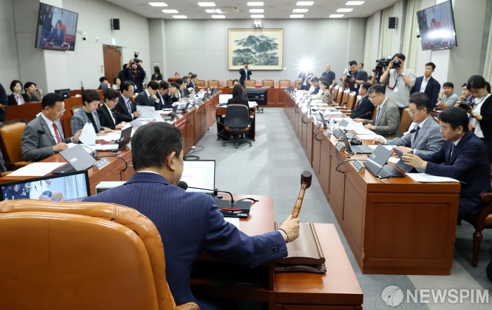[서울=뉴스핌] 정일구 기자 = 김병기 국회 운영위원장이 24일 오전 서울 여의도 국회에서 열린 국회운영위원회 전체회의에서 의사봉을 두드리고 있다. 2025.09.24 mironj19@newspim.com