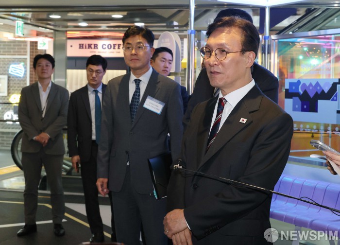 [서울=뉴스핌] 청사사진기자단 =김민석 국무총리가 25일 서울 중구 한국관광공사 서울센터 하이커그라운드를 찾아 하이커 스트리트를 시찰하고 있다.2025.09.25 photo@newspim.com