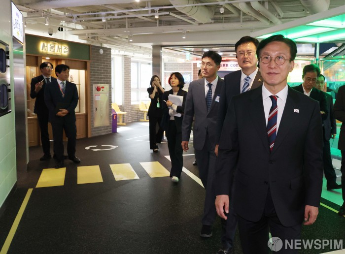 [서울=뉴스핌] 청사사진기자단 =김민석 국무총리가 25일 서울 중구 한국관광공사 서울센터 하이커그라운드를 찾아 하이커 스트리트를 시찰하고 있다.2025.09.25 photo@newspim.com
