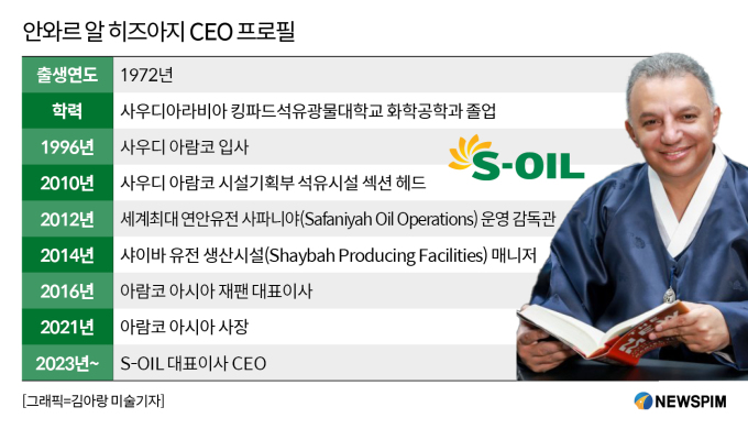 지난 2003년부터 S-OIL의 CEO로 재직중인 안와르 알 히즈아지 대표는 1972년 사우디아라비아 출신으로 킹파드 석유광물대학교에서 화학공학을 전공했다. S-OIL의 최대주주인 사우디 아람코에서 1996년부터 27년 동안 석유 가스 생산시설 관리를 포함해 사업개발, 투자 현지화, 초대형 프로젝트 관리와 시설 계획 등 다양한 분야에서 풍부한 경험을 쌓았다.