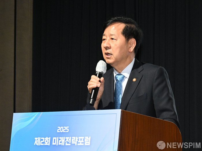 [서울=뉴스핌] 구윤철 부총리 겸 기획재정부 장관 29일 서울 영등포구 페어몬트 호텔에서 열린 '제2회 미래전략포럼'에서 기조발표를 하고 있다. [사진=기획재정부] 2025.09.29 photo@newspim.com