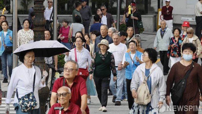 [서울=뉴스핌] 양윤모 기자 = 중국 단체관광객의 무비자 입국 첫날인 29일 서울 중구 남산한옥마을 방문을 마친 관광객들이 충무로 거리를 걷고 있다. 3명 이상 중국인 단체관광객은 29일부터 무비자로 최대 15일 동안 대한민국 전역을 여행할 수 있다. 2025.09.29 yym58@newspim.com