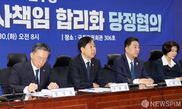 [서울=뉴스핌] 윤창빈 기자 = 구윤철 부총기 겸 기획재정부 장관이 30일 오전 서울 여의도 국회 의원회관에서 열린 경제형벌 민사책임 합리화TF 당정협의에서 모두발언을 하고 있다. 2025.09.30 pangbin@newspim.com
