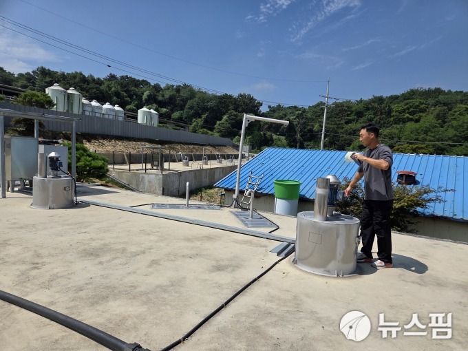 농장에는 분뇨를 고액 분리한 뒤 혐기·호기 과정을 거쳐 액비로 재활용하는 순환시스템이 24시간 가동되고 있었다. 순환된 액비는 다시 돈사에 투입돼 유기물 분해를 촉진하고 악취 발생 물질을 희석하는 역할을 한다. 이 과정에서 암모니아는 절반 가량, 황화수소는 80% 가까이 줄어드는 효과가 나타난다.