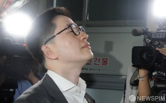 [서울=뉴스핌] 양윤모 기자 = 이원모 전 대통령실 인사비서관이 1일 오전 서울 서초구 해병대원 순직 사건 관련 의혹을 수사하는 순직해병특검팀(특별검사 이명현)에 이종섭 전 국방부 장관의 '도피성 호주대사 임명 의혹'조사를 위해 피의자 신분으로 소환되고 있다. 2025.10.01 yym58@newspim.com
