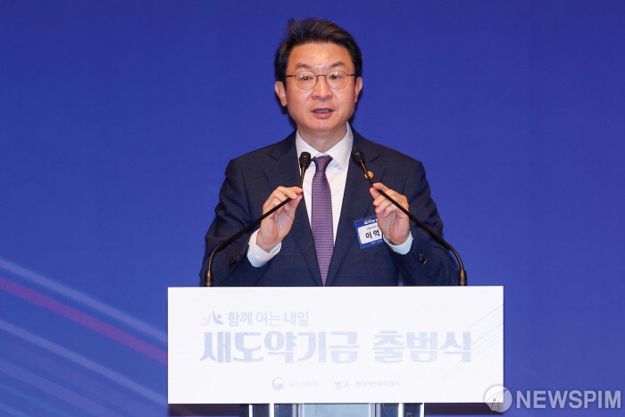 [서울=뉴스핌] 류기찬 기자 = 이억원 금융위원장이 1일 오전 서울 중구 한국프레스센터에서 열린 ‘새도약기금 출범식’에서 축사를 하고 있다. 2025.10.01 ryuchan0925@newspim.com