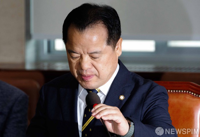 [서울=뉴스핌] 윤창빈 기자 = 위철환 중앙선거관리위원회 위원 후보자가 1일 오전 서울 여의도 국회 행정안전위원회에서 열린 인사청문회에서 마이크를 고쳐잡고 있다. 2025.10.01 pangbin@newspim.com