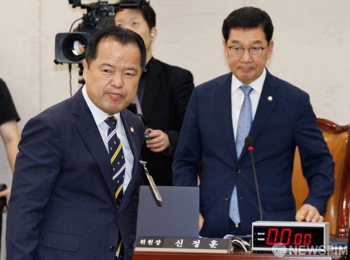[서울=뉴스핌] 윤창빈 기자 = 위철환 중앙선거관리위원회 위원 후보자가 1일 오전 서울 여의도 국회 행정안전위원회에서 열린 인사청문회에서 신정훈 위원장에게 선서문을 전달하고 돌아서고 있다. 2025.10.01 pangbin@newspim.com