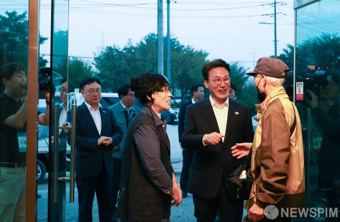 천원 아침백반 식당 격려 방문한 김민석 총리