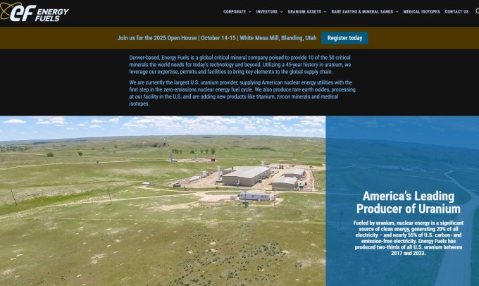 [서울=뉴스핌] 이홍규 기자 = 우라늄 생산업체로 알려진 에너지퓨얼스(종목코드: UUUU)가 미국 정부의 차기 지분 취득 후보로 거론되고 있다. 현재 미국에서 중(重)희토류 정제 능력은 이 회사가 유일하다는 점에서다. 중희토류 정제는 중국이 목줄을 쥔 분야다.