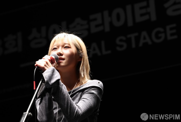 [서울=뉴스핌] 최지환 기자 = 1일 오후 서울 동대문구 콘텐츠문화광장 스테이지66에서 열린 제3회 싱어송라이터 경연대회 '히든스테이지(HIDDEN STAGE)' 결선에서 참가번호 3번 김유정이 경연을 펼치고 있다. '히든스테이지'는 종합뉴스통신사 뉴스핌과 감엔터테인먼트가 주최·주관하고, 문화체육관광부·서울특별시·한국콘텐츠진흥원·한국음악저작권협회가 후원한다. 2025.10.01 choipix16@newspim.com