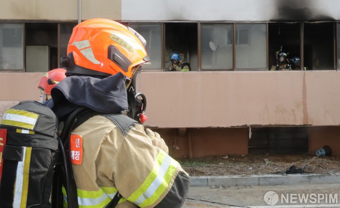 [서울=뉴스핌] 양윤모 기자 = 전기 이륜자동차와 개인용 이동장치의 이동 수단 확대로 화재가 계속되는 가운데, 서울소방재난본부가 주최한 대용량 리튬배터리 실물 화재재현 실험이 1일 오후 노원구 상계 마들아파트 재건축 현장에서 열렸다. 서울소방재난본부는 리튬이온 배터리팩 발화를 이용해 실제 아파트 화재 상황을 재현 화재 진압 전술과 인명 구조 능력을 강화하는 훈련으로 진행했다. 2025.10.01 yym58@newspim.com