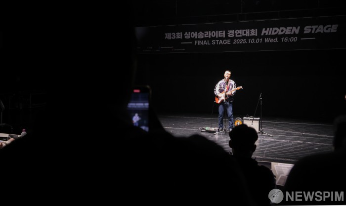 [서울=뉴스핌] 최지환 기자 = 1일 오후 서울 동대문구 콘텐츠문화광장 스테이지66에서 열린 제3회 싱어송라이터 경연대회 '히든스테이지(HIDDEN STAGE)' 결선에서 참가번호 4번 김마누가 경연을 펼치고 있다. '히든스테이지'는 종합뉴스통신사 뉴스핌과 감엔터테인먼트가 주최·주관하고, 문화체육관광부·서울특별시·한국콘텐츠진흥원·한국음악저작권협회가 후원한다. 2025.10.01 choipix16@newspim.com
