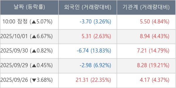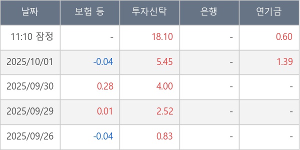 [표] 주요 기관별 순매매량 (단위 만주)