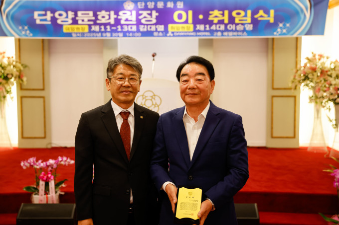 신임 이승영 단양문화원장(왼쪽)과 전임 김대열 원장. [사진=단양군] 2025.10.02 choys2299@newspim.com |